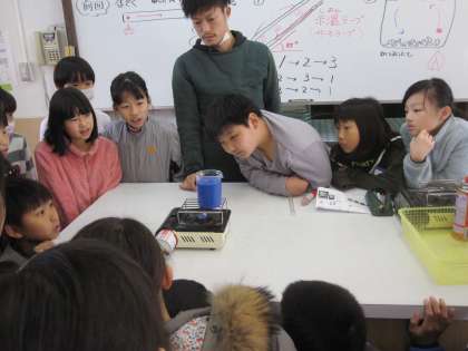 あたたまって動くおがくずを見て,水が動きながらあたたまることに気付いていました。