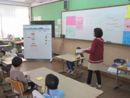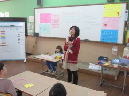 お店屋さんの学習の練習を行いました。お店屋さんとお客さんとで,どのようなやり取りが大切なのかを考えました。