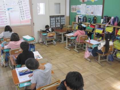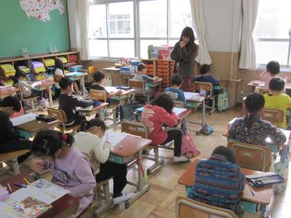 学習の振り返りのテストを行いました。集中してテストの問題に取り組んでいました。
