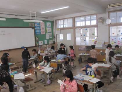 見たことのないような生き物を題材に,版画の絵を描いています。