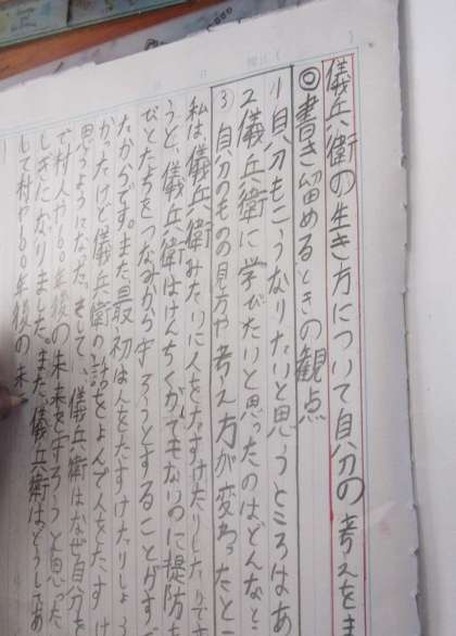 人物の生き方から,自分の考えをまとめて話し合いました。