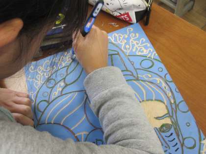 切り出しをうまく使い,削り残しがないかを確認して削り取っていました。
