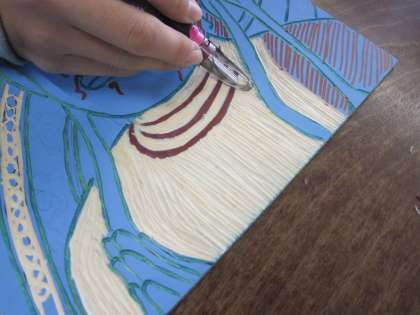 5年生の時にも面彫りを行っていたので,子どもたちは深さを考えながら彫り進めていました。