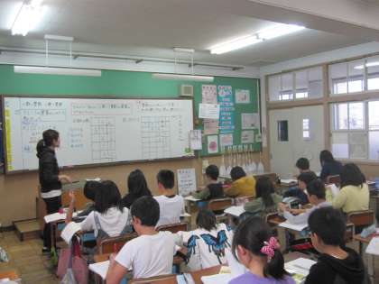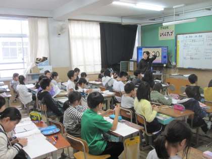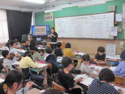 小数÷整数の筆算の学習をしました。理由を考えて小数点をどこに打つのかを話し合いました。