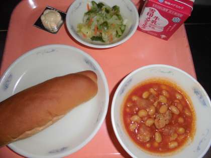 子どもたちから、「『大豆と鶏肉のトマト煮』は、私の大好きな給食です。大豆がやわらかくて美味しく、沢山おかわりしました。とっても美味しかったです。『アスパラガスのソテー』は、人参が甘くて、アスパラガスがやわらかくて、美味しかったです。明日の給食も楽しみにしています。」と、感想をくれました。