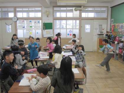 曲の様子に合わせて,体で表現して鑑賞しました。