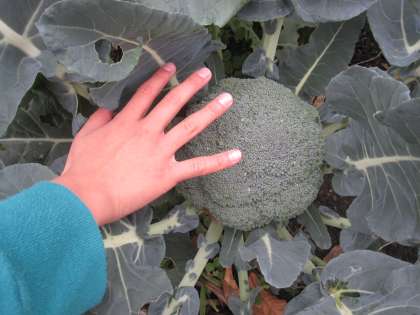 昼休みに土をかぶせたり,水をしっかりとやったりして,手入れをしている子どももいます。とても大きくなったブロッコリーが増えてきました。子どもたちの手のひらをこえるものもあります。