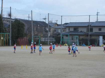 作戦を子どもたちはしっかりと立て,声を出しながらゲームをしています。外に出て応援する子どもたちも,チームの子どもたちにアドバイスしながら活動しています。