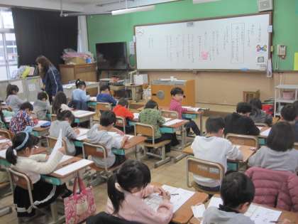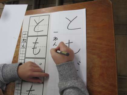 書写を行いました。「ともだち」をしっかりと丁寧に書くことができました。