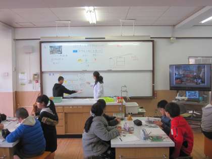 てこをつかって,重いものを持ち上げるときの手ごたえの違いについて学習をしました。おもりの位置を変えたとき,持ち上げるところを変えたときの手ごたえの違いについて交流しました。