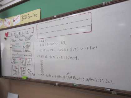 インタビューの仕方を練習しました。質問をして,答えてもらったことにさらに聞いて話を進めていく話し方を学びました。