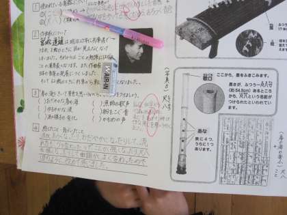 春の海を聞いて感じたことを書いたり,日本の楽器が使われていない春の海の演奏と日本の楽器の演奏とを聴き比べたりしました。