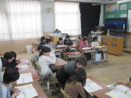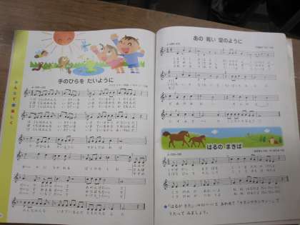 教科書の巻末の方にある歌を歌いました。知っている曲でもあったので,元気よく歌うことができました。