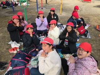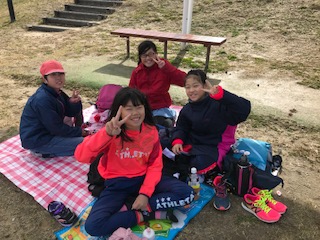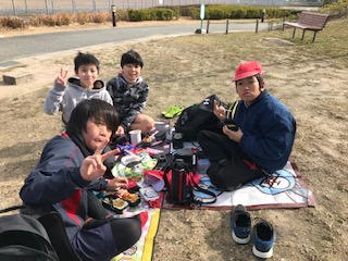 昼食のお弁当を食べました。友達と楽しく食べています。