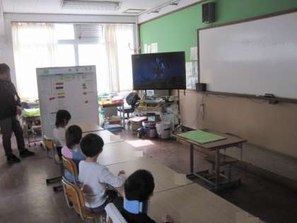 映像を見て,昔ばなしに親しみました。映像から言葉の言い回しをよく聞いて学習をしました。