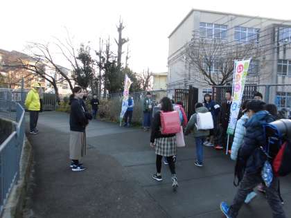 今年は暖冬ですが、今週はかなり冷えてきました。見守り隊の皆様、旗当番の保護者の皆様、寒い中もありがとうございます。