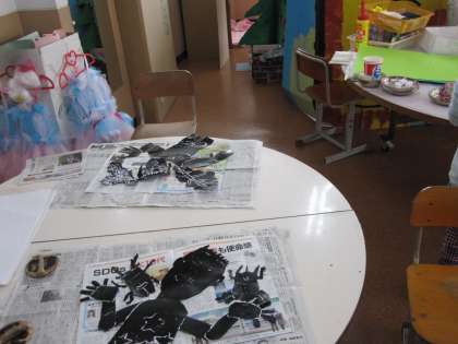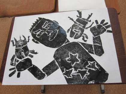 紙を切って,貼って,最後に刷って作品ができあがりました。
