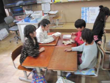 かるたは友達と読みあって楽しんでいました。けん玉では,友達のひもと絡まってしまい,困っている子どももいました。