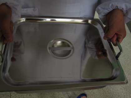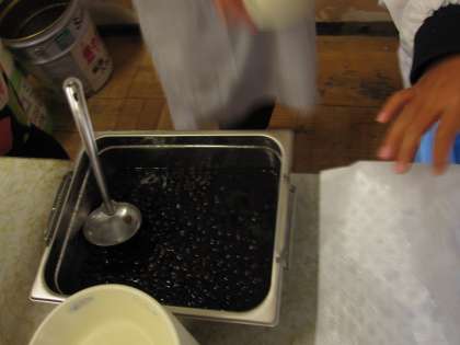 今日はスチームコンベクションオーブンで調理された黒豆が,専用の食缶に入れられ,子どもたちは,慎重に運んでいました。スチームコンベクションオーブンで調理された黒豆は,とっても柔らかかったです。
