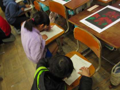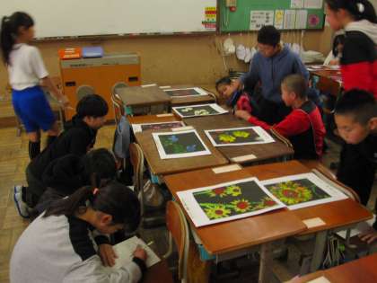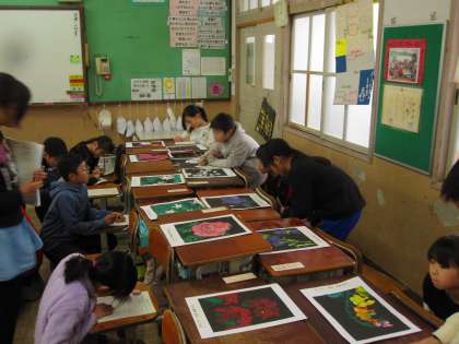 出来上がった作品を台紙に貼り,お互いに作品を鑑賞し合いました。