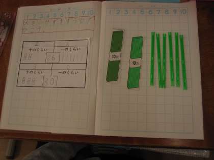 子どもたちは,数え棒を操作しながら大きな数について考えていました。