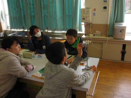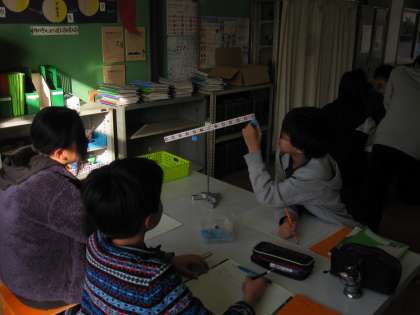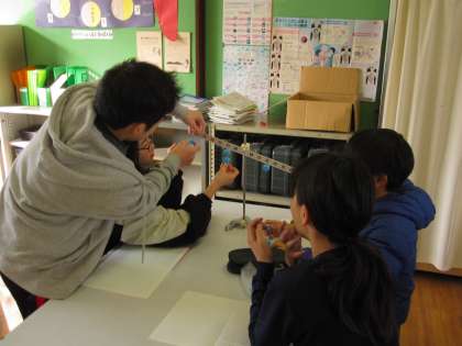 どのような時がつりあうかを調べました。子どもたちは,おもりの位置を変えながら調べました。