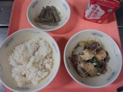子どもたちから、「『すきやき風煮』は、お肉がやわらかくて、切りふもモチモチしていて、美味しかったです。」と、感想をくれました。