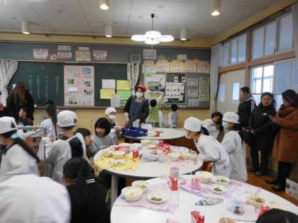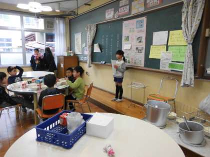 「たたきごぼうは家でもいっぱい食べたよ」という子もいました。学校のたたきごぼうは,米酢を使っています。「お家のは,お酢味だった?おしょうゆ味だった?」とたずねると「家のは,おしょうゆ味だった」とのことでした。