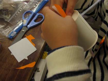 ストローとコップを使って,動く作品作りをしました。