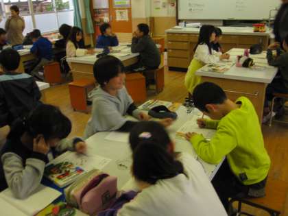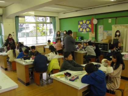 桜の様子を観察しました。桜のつぼみができている様子をワークシートによく見て書いていました。