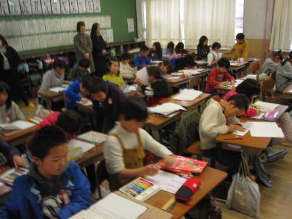 同じ漢字の音読みと訓読みをつかって,かるたを作りました。楽しい五・七・五のかるたができていました。