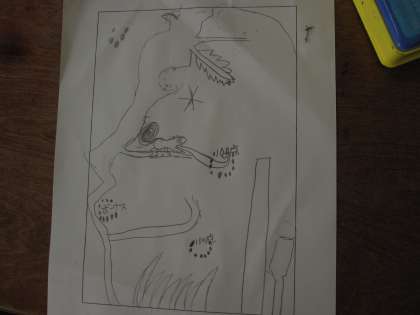 くぎを打って,ビー玉がコロコロ転がるゲームの構想を考えました。