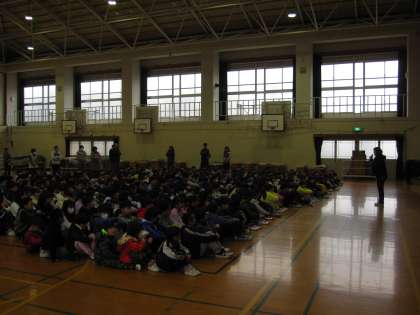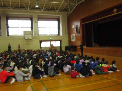 避難訓練を行いました。今回は給食室からの火災を想定して避難しました。本日は雨だったので,体育館へ避難することになりました。