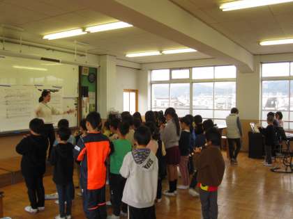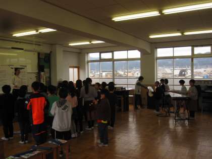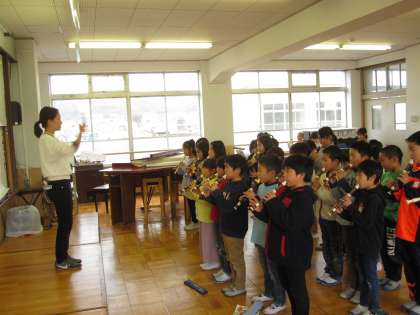 パフをクラスで演奏しました。子どもたちは,まわりの友達の音を聞きながら,音を合わせて演奏できました。