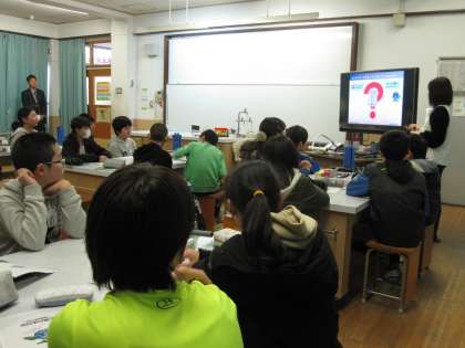 ニチコンの方々に来ていただき,環境学習を行いました。