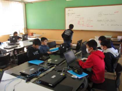 パソコンで,調べに行くところや道のりを確認していました。