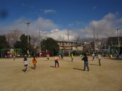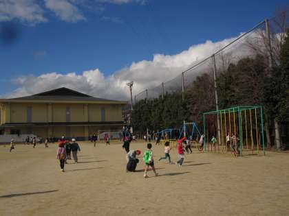 今日は日差しのある暖かな昼休みでした。子どもたちは,一輪車やドッチボール,バスケットボール,おにごっこ,鉄棒など,体いっぱい動かしていました。