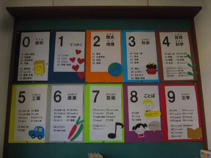 学校図書館には,学校司書に作成していただいた分類表がリニューアルされました。