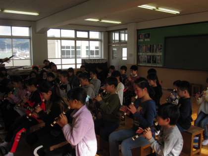 リコーダーで,キリマンジャロを演奏しました。高い音を出す練習をし,口を小さくして息を吹き,高い音を出すことができていました。