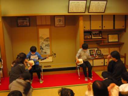 子どもたちは,音を出すことの難しさを感じながら,伝統文化に慣れ親しみました。