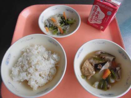 子どもたちから、「『豚肉と野菜の煮つけ』は、野菜がやわらかく、味が野菜にしみていて、美味しかったです。『小松菜と切干大根の煮びたし』は、切干大根がやわらかくて、小松菜がシャキシャキしていて、美味しかったです。」と、感想をくれました。