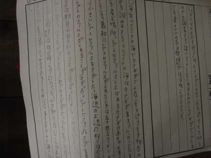 文章を読み,要約をして紹介できるように学習をしています。構成を考えながら,文章を考えています。
