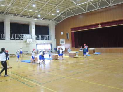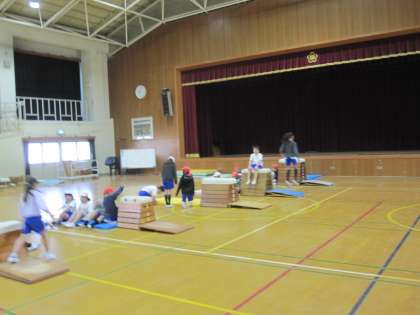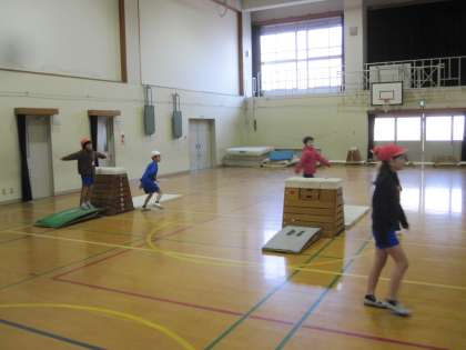 とび箱運動を行っています。学習の場を考えながら学習をしています。