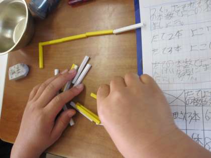 研究発表会で行う単元の学習を始めました。縦と横の本数の変わり方の関係を考えていきました。