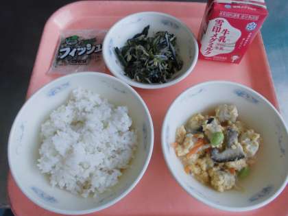 子どもたちから、「『高野どうふの卵とじ』が、とっても美味しかったです。『麦ごはん』も、プチプチでもちもちしていて、美味しかったです。」と、感想をくれました。