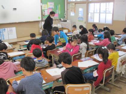 プリントで練習問題に取り組みました。問題をしっかりと読んで取り組むことができています。