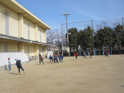 とても寒い日でしたが,たくさんの子どもたちが元気に外で遊んでいました。一輪車や鉄棒など,できるようになったことを子どもたちは教えてくれました。
