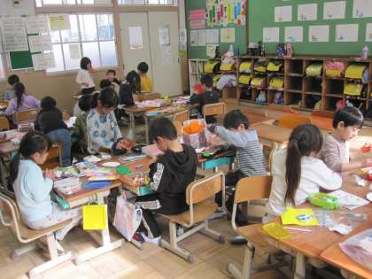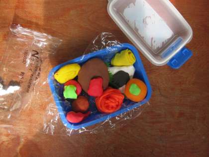 紙粘土に色を混ぜるときに手を汚しながらも,しっかりと色を混ぜて,おいしそうなおかずを作ることができていました。