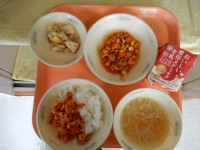 子どもたちから,「『豚肉とキャベツの味噌いため』は,少しぴり辛で味噌の味がすごくおいしかったです。『五目煮豆』は,人参がやわらかくて,豆が甘く煮汁もおいしかったです。」と,感想をくれました。