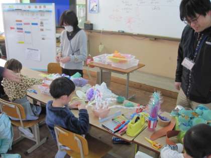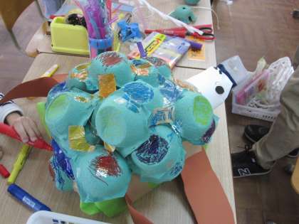 作品展に向けて,海の中の生き物を作り進めています。細かな工夫がそれぞれ見られます。